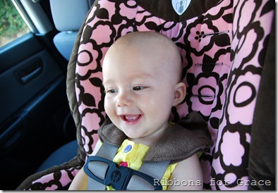 We got a super deal on a convertible car seat about a month ago from Target. Unfortunately, the model we bought didn’t come with covers for the shoulder straps. My Sweet Pea is just so sensitive that the straps started to bother her immediately.